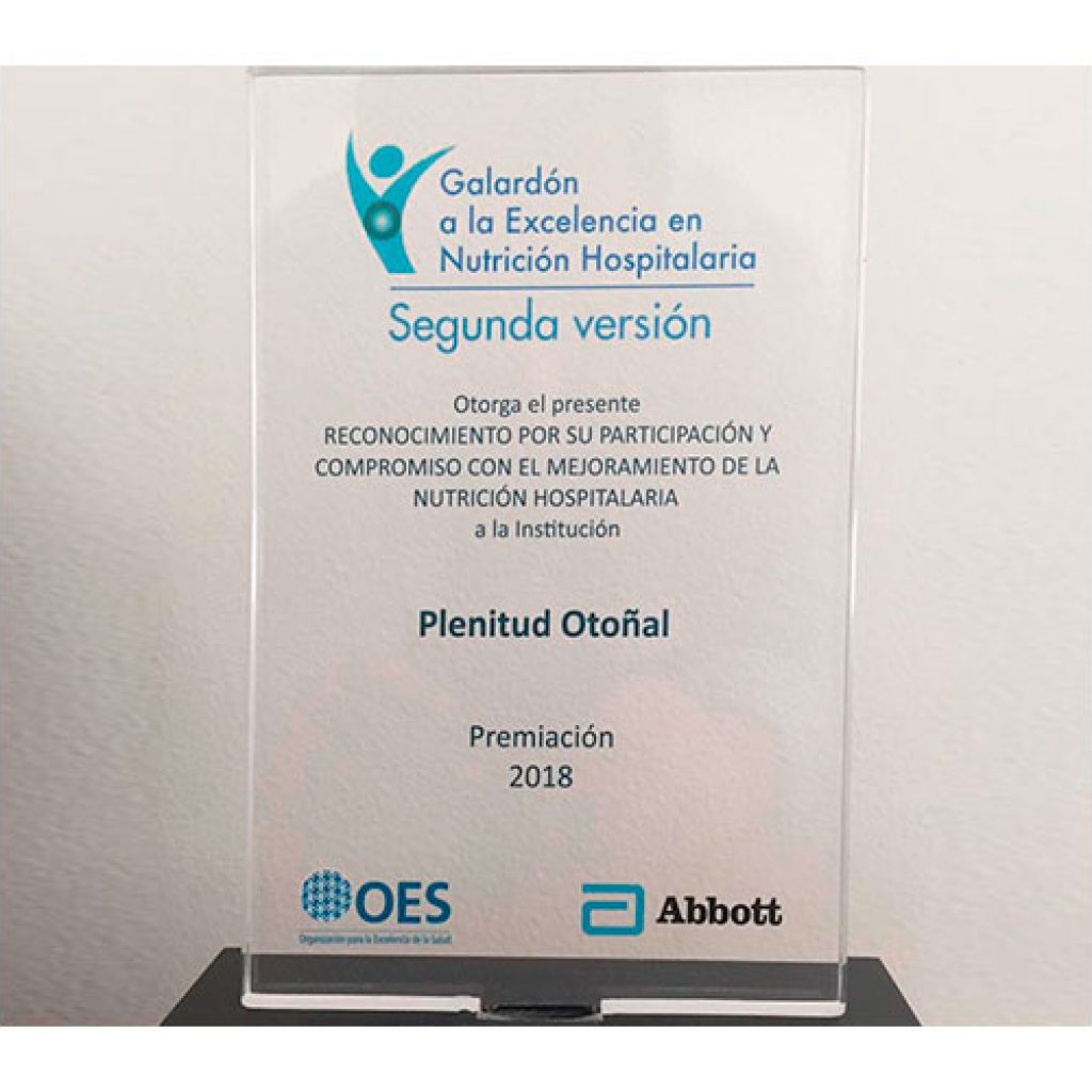 Galardón a la Excelencia Nutricional otorgado por la Organización de Excelencia en Salud – OES.