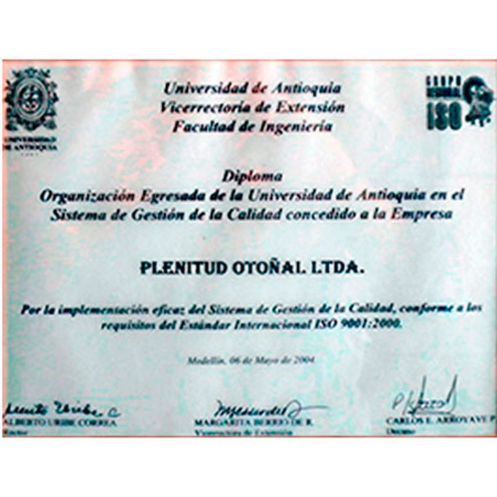 Reconocimiento como Organización Egresada de la Universidad de Antioquia en el año 2004.
